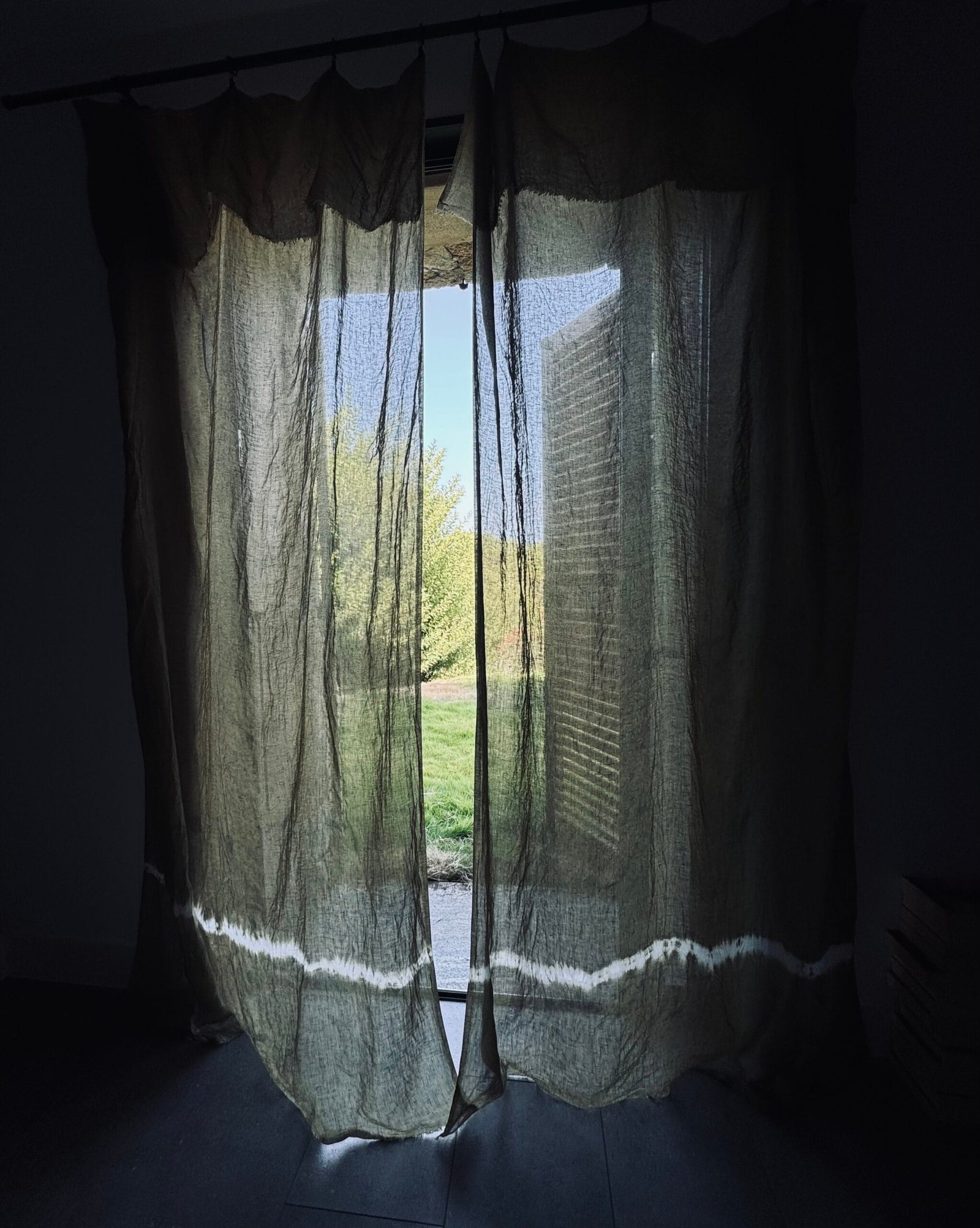 Voilage très fluide avec un effet froissé naturel, laissant passer une douce lumière.